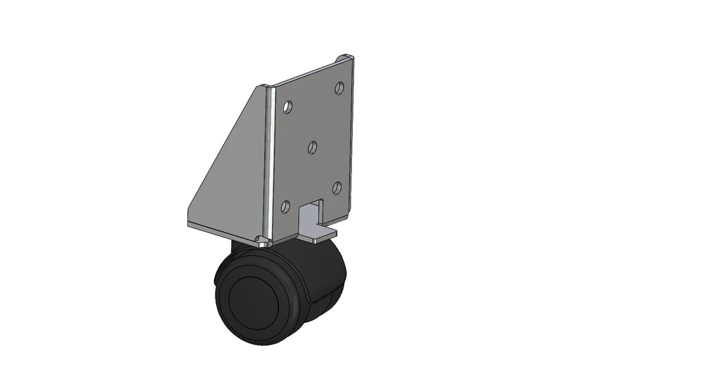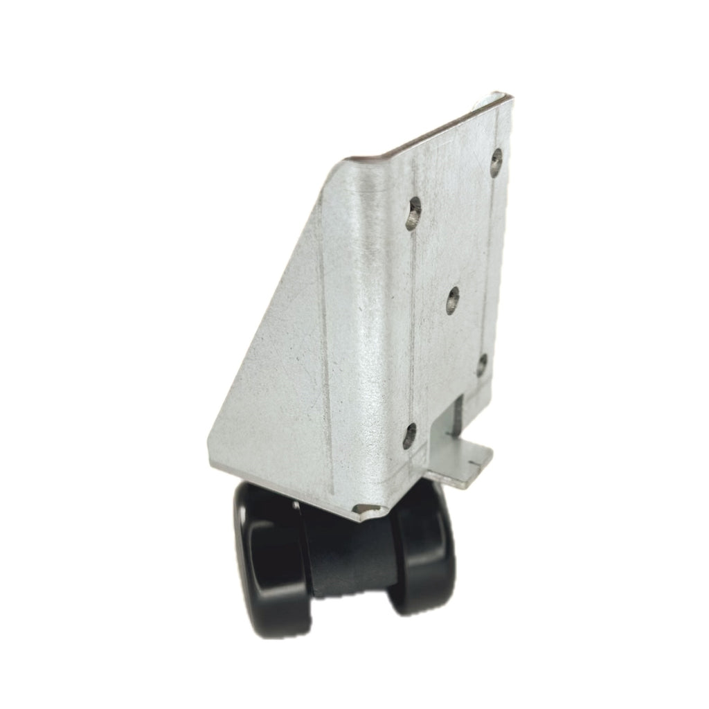 Befestigungsplatte 90 Grad mit Anschlag, Doppelrolle Ø35 mm, verfügt über eine harte Lauffläche und ist ohne Feststeller. Sie ist speziell für die seitliche Montage konzipiert und besitzt eine Anschlagnase, die eine sichere Abstützung gewährleistet.